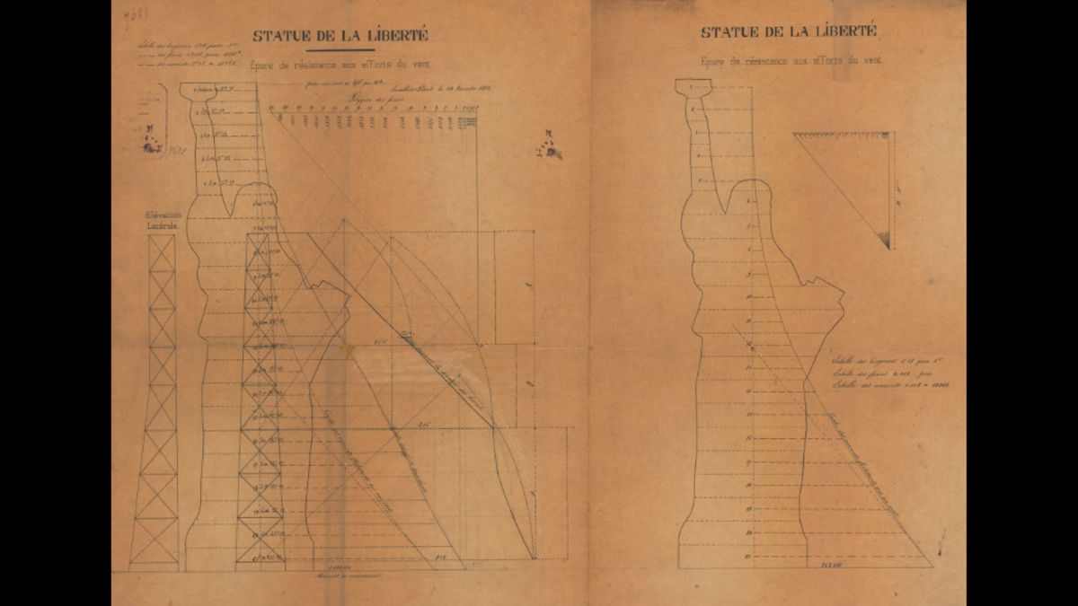 اسمیتسونیان مگ گزارش می دهد: ورق های پر از محاسبات ، یادداشت های دست نویس ، لیست سخت افزارهای مورد نیاز و مشخصات مختلفی از جمله مشخصات مربوط به خرپای آهنی که از این مجسمه پشتیبانی می کند.