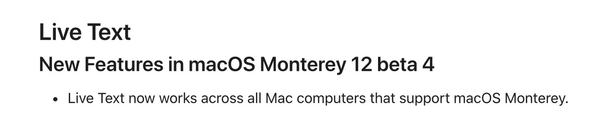 اپل در حال توسعه است که دستگاه ها می توانند از یکی از ویژگی های انحصاری تراشه M1 قبلی خود در چهارمین نسخه bet macOS Monterey استفاده کنند. براساس اسناد جدیدی که اپل منتشر کرد ، Live Text ، ویژگی جدید اسکن تصویر و شناسایی متن این شرکت ، اکنون در "همه رایانه های Mac که از macOS Monterey پشتیبانی می کنند" قابل اجرا است. همانطور که خالق ویدیوی فناوری رنه ریچی یادداشت می کند ، منظور این مکینتاش مبتنی بر Intel است. یکی از کاربران ادعا می کند که از سال 2008 در Mac Pro کار کرده است Apple Photos و برنامه Camera. ویژگی جدید یکی از چندین مورد برجسته macOS Monterey بود که اپل به MacBook Airs ، Pro و iMac جدیدتر خود محدود شد ، و این اولین شکست واقعی عملکرد این شرکت بین Mac هایی است که تراشه های طراحی شده خود را اجرا می کنند و پردازنده های Intel.